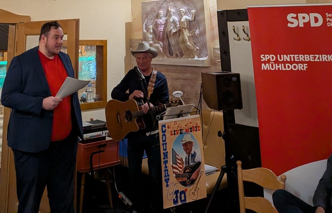 Im vollbesetzten Nebenzimmer der Taverne Korfu fanden sich viele Genossinnen und Genossen aus den Nachbarortsvereinen ein. Aber auch Vertreter der Lokalpolitik aus den Reihen der CSU mit deren Bürgermeisterkandidaten Emil Kirchmeier an der Spitze. Ebenso der Vorsitzende des Seniorenbeirats, Thomas Lainer.