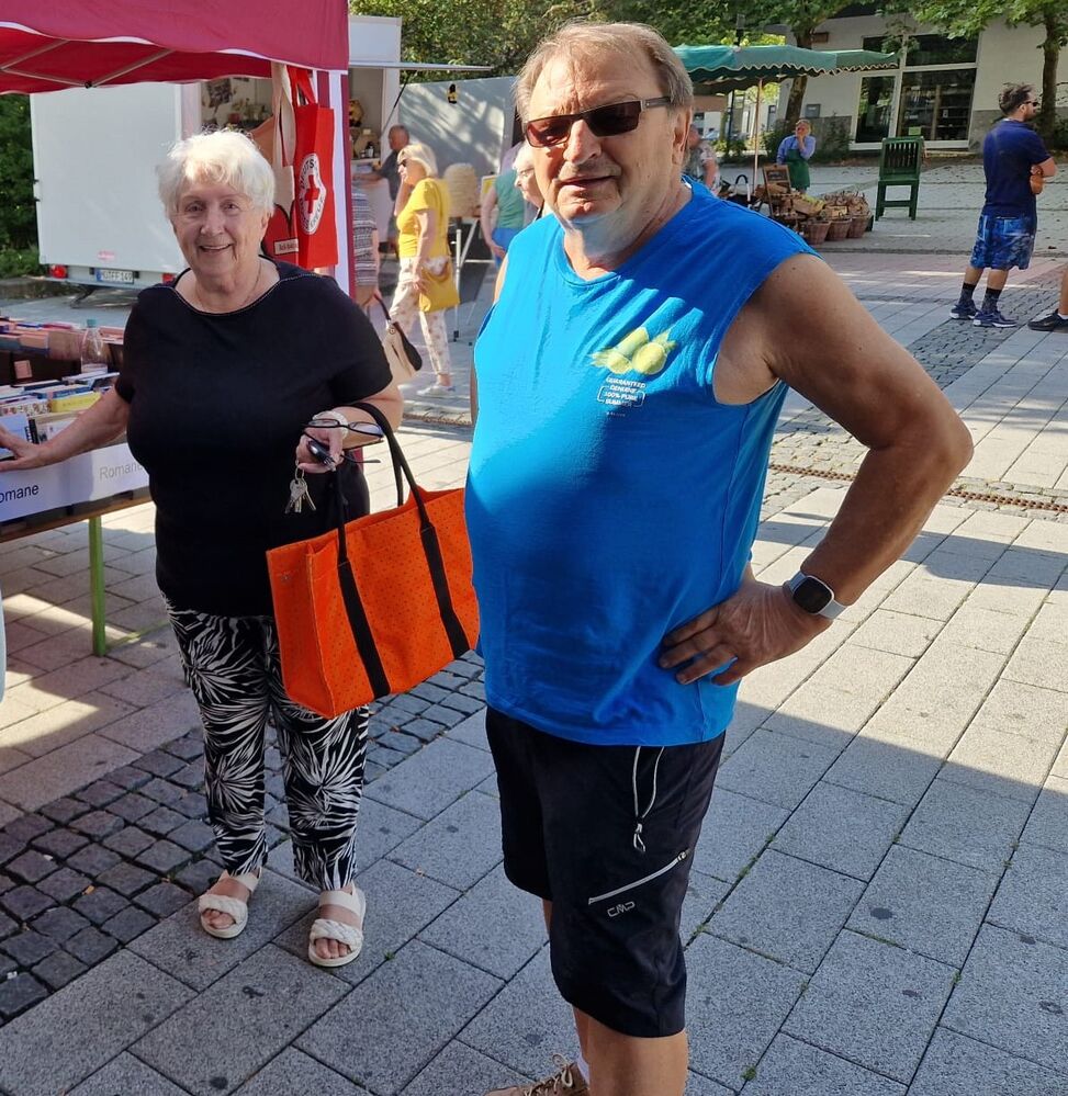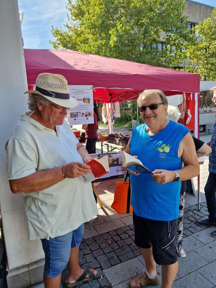 Stadträtin Christine Blaschek versorgte sich auch wieder mit neuem Lesestoff. Rechts, Gert Hilger, der immer als Unterstützung vor Ort ist, wenn Hillfe gebraucht wird.