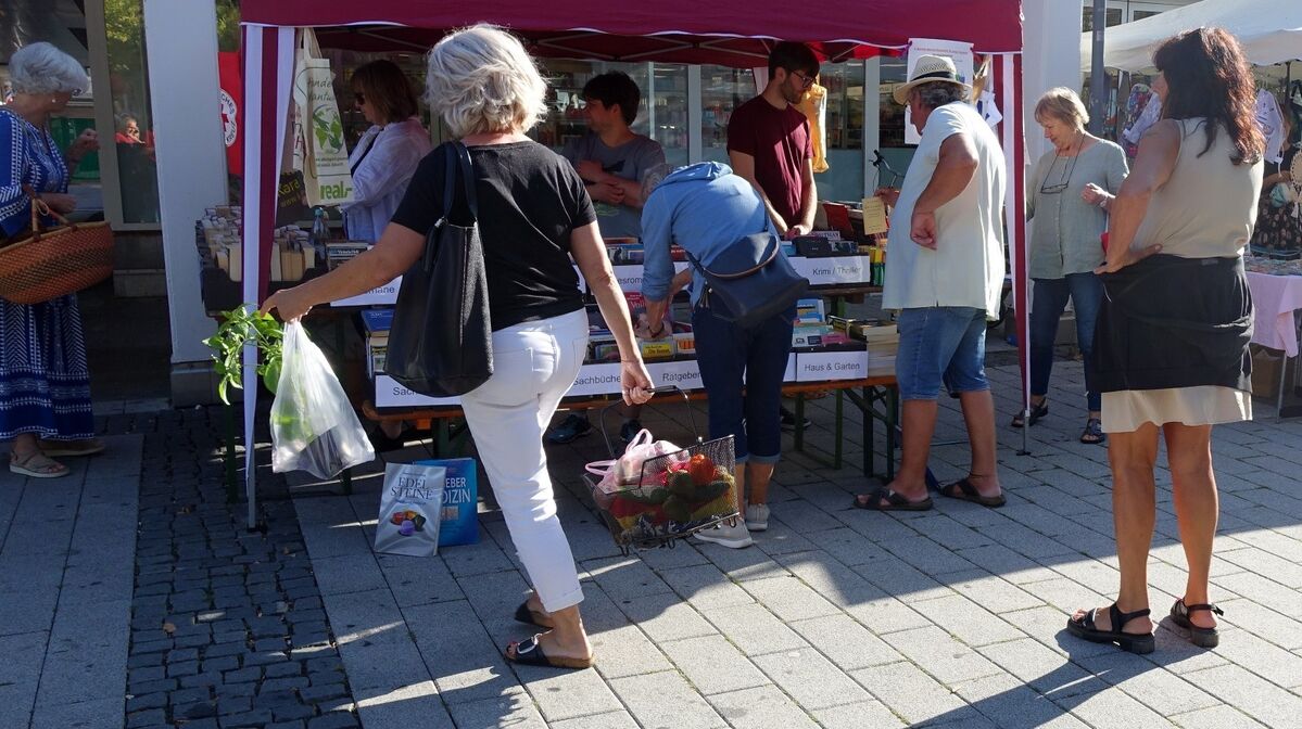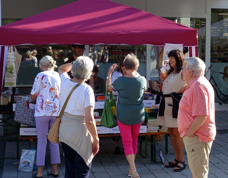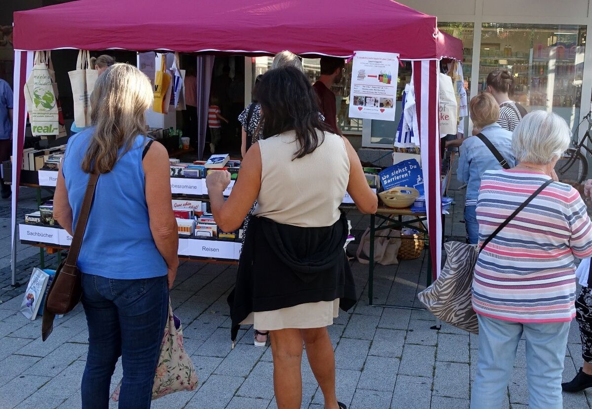 Schnell waren die ersten Taschen mit Büchern gefüllt. Stadträtin Martina Arnusch-Haselwarter (2. von rechts) bewies erneut, dass sie ein echtes Verkaufstalent ist ;-)