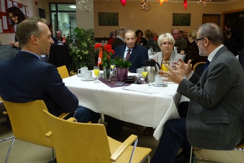 SPD OV Vorsitzender Bernd Wegmann konnte zahlreiche Parteimitglieder, Gäste und Familienmitglieder im Foyer des Arbeiterwohlfahrt Seniorenheims begrüßen, als am 26. November 2016 dort die Ehrung der Bayern SPD stattfand.