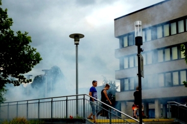Beißender Rauch und Qualm dringt aus der Tiefgarage, die Alarmanlage geht an und damit setzt sich ein großes Aufgebot an Einsatzkräften aus dem ganzen Landkreis in Bewegung, um diese gefährliche Situation in den Griff zu bekommen. Zudem greift der Brand auch auf das Rathaus über, Menschen müssen gerettet werden