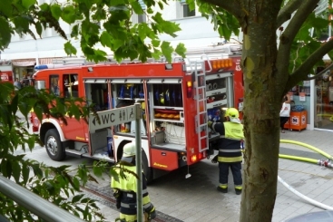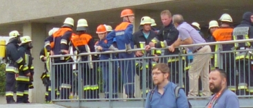 – so gestaltete sich das Szenario am Samstagnachmittag in der Waldkraiburger Innenstadt, als eine Großübung von Feuerwehr und Rotem Kreuz angesetzt war. Feuerwehren aus der Umgebung, das THW, Polizei alle waren im Einsatz.