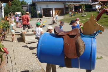 Mit 30 Kindern starteten die Betreuer des SPD Ortsvereins – Martina Arnusch-Haselwarter, Karl-Heinz Sterba und Ursula Fischer zum Besuch des Erlebnisbauernhofes der Familie Bauer in Oberthalham. Bei strahlendem Sonnenschein, aber großer Hitze, verbrachten die Kinder einen aufregenden Tag auf dem Land.