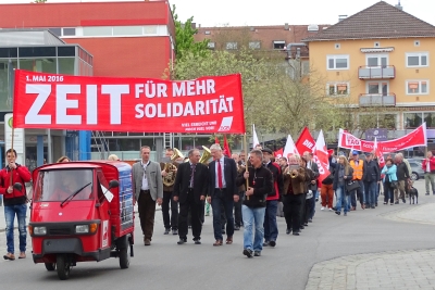 Waldkraiburg unterstützt durch seine Teilnahme die Forderungen der Arbeitnehmer und der Gewerkschaften.