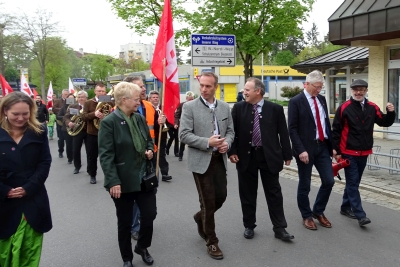 Traditionell begann die Maikundgebung vor dem Rathaus in Waldkraiburg mit einem Standkonzert der Egerländer