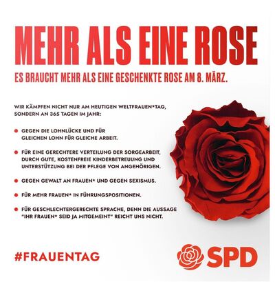 Am 8. März ist Weltfrauentag. Auch in Europa gibt es noch viel für zu tun, damit Mädchen und Frauen gleiche Chancen wie Jungen und Männer haben. Unsere Forderungen für das Europaparlament finden Sie hier.