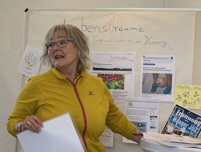 Kinder- und Jugendreferentin Eva Rehbein gibt einen Überblick; sie informiert über vorhandene Angebote und Einrichtungen für Kinder und Jugendliche in Haag.