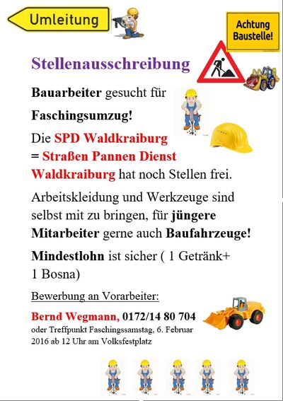 - Bauarbeiter gesucht für den Faschingszug von 12°° - 15°°