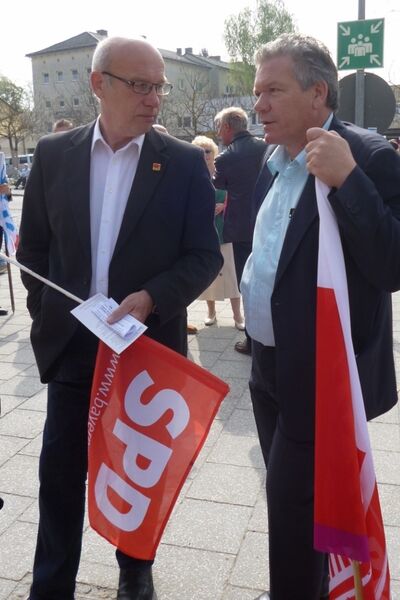In Waldkraiburg fand auch 2013 wieder die Maikundgebung des DGB statt. Als Hauptredner war Christian Bindl vorgesehen, von der Katholischen Betriebsseelsorge. Leider musste er krankheitsbedingt absagen, und Richard Fischer, SPD UB Vorsitzender und DGB Kreisverbandsvorsitzender sprang deshalb kurzfristig ein.
