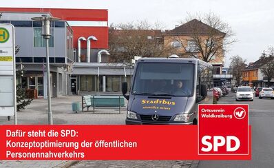Wir wollen ein neues Gesamtkonzept für den öffentlichen Nahverkehr in Waldkraiburg, das unseren Bürgerinnen und Bürgern ihre Mobilität auch ohne Auto sichert und die Umwelt schont. Wir setzen uns ein für optimierte Fahrzeiten und Barrierefreiheit der Stadtbus-Linie und der Umland-Verbindungen.