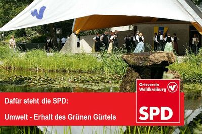 Die SPD setzt sich für den Erhalt des "Grünen Gürtels" und die bestehenden Naherholungszonen ein. Wir forden bei Neubauvorhaben oder Erschließungen von Grundstücken im großen Stil ein Konzept, um die Umwelt nicht mehr zu schädigen als notwendig und den Erhalt von Bäumen und Wäldern nicht leitchfertig aufs Spiel zu setzen.