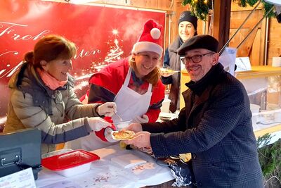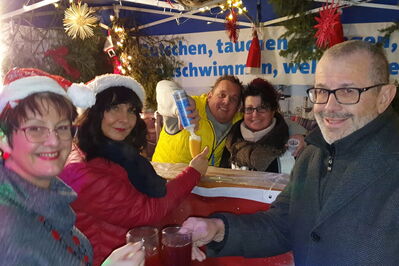 Richard Fischer, Bürgermeisterkandidat der SPD Waldkraiburg, besuchte den Stand des Förderverein Waldbad Waldkraiburg e.V. und dankte den Mitglieder und Vorstandschaft um Jürgen Zabelt und Martina Arnusch Haselwarter für Ihren unermüdlichen Einsatz um das Waldbad. Heidi Janka (Stadtratskandidatin - im Bild mit Nikolausmütze) hat die Liwanzen gebacken und freut sich über den Besuch des "neuen Bürgermeisters".